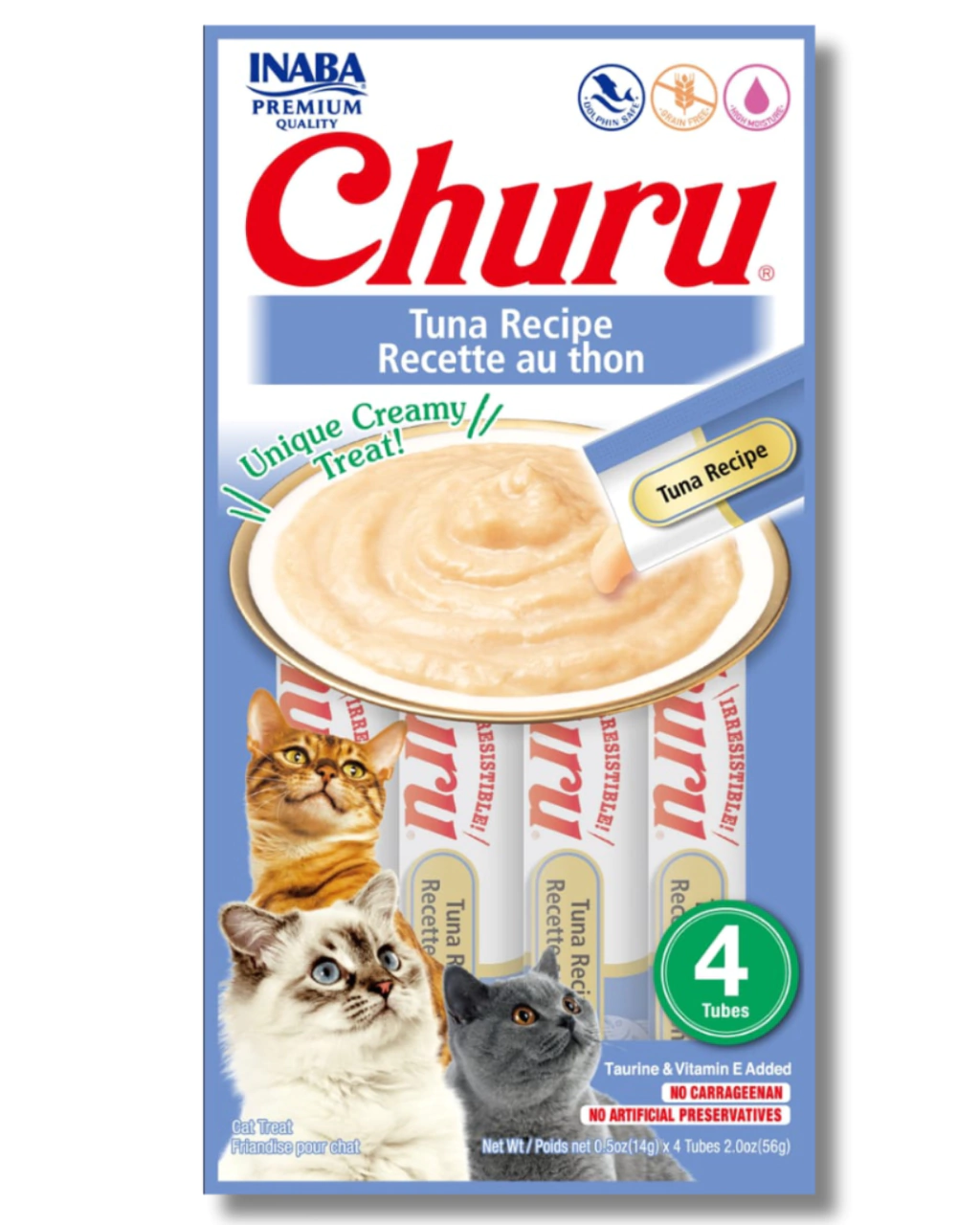 Ingredientes: Água, atum, tapioca, saborizantes naturais, saborizante natural de atum, goma de guar, colagénio, suplemento de vitamina E, extrato de chá verde.