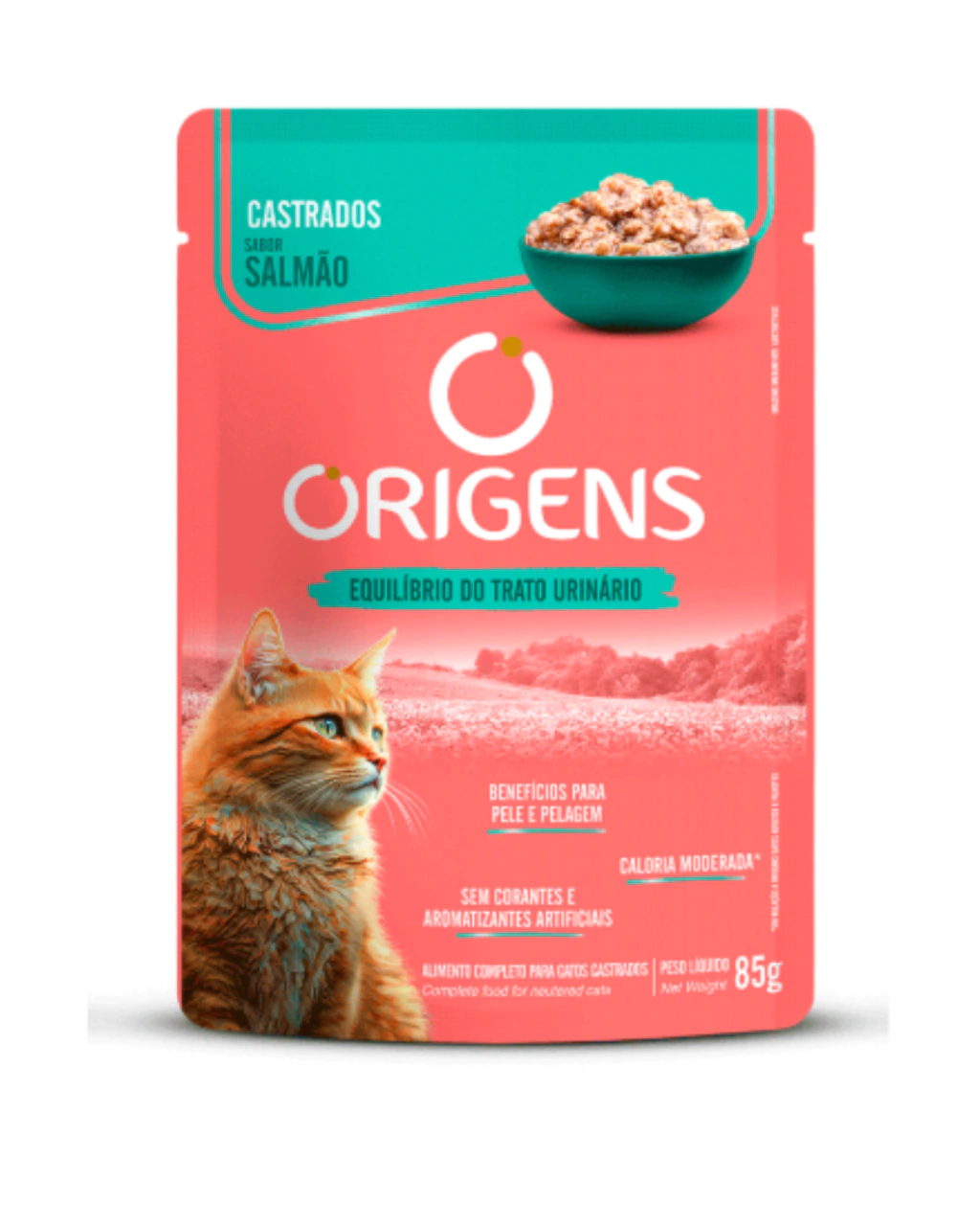 A Ração Úmida Origens Gatos Castrados Salmão é uma alimentação Premium Especial feita especialmente para os gatos que passaram pelo processo de castração e necessitam de uma dieta específica e equilibrada.