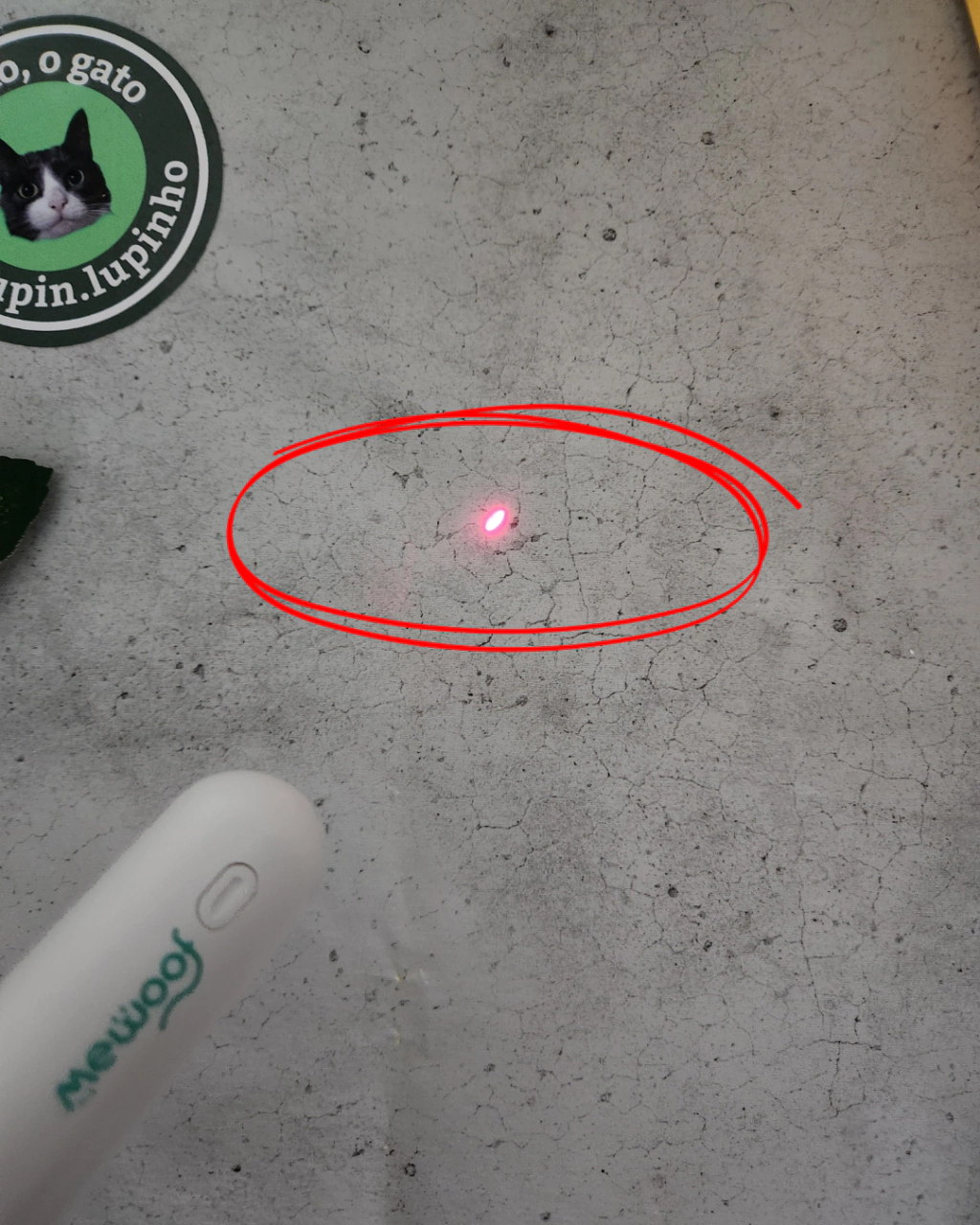 Design multifuncional, a cauda pode emitir laser, pode ser usada tanto como bastão para provocar gatos quanto como ponteiro laser!