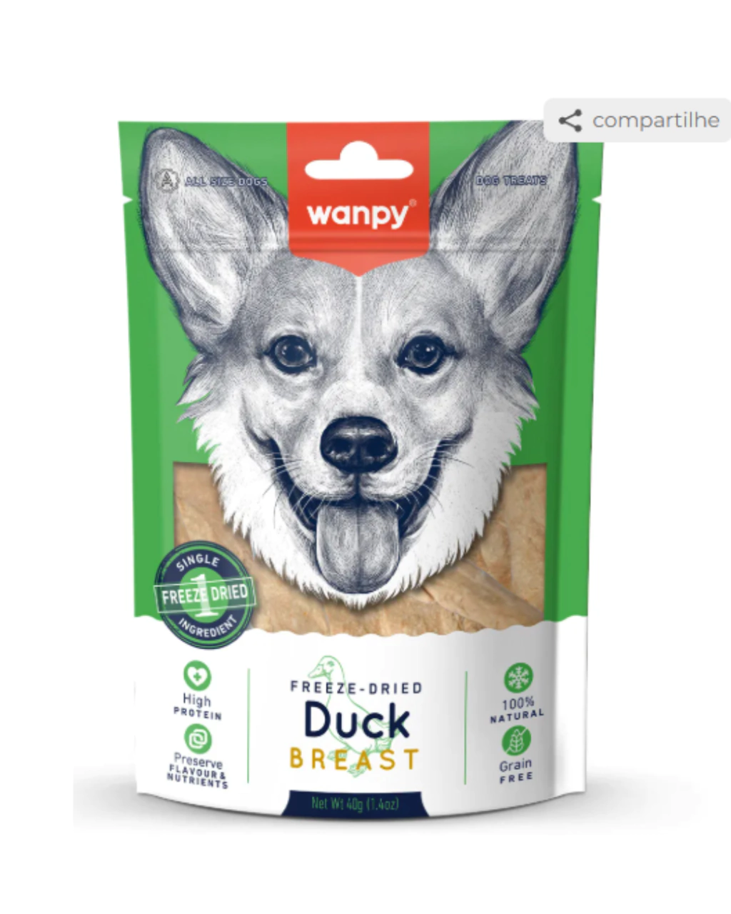 Composição básica: Carne de pato liofilizada 100%.